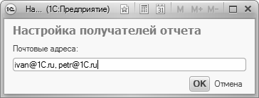 Рис. 4.9. Ввод электронных адресов для рассылки отчета