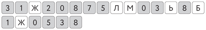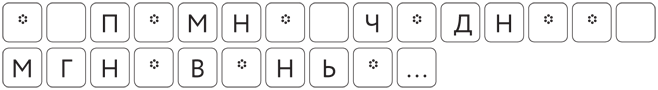 Здесь пароль расширен дополнительными клеточками, в которые вписаны все другие согласные разгадываемой строчки и добавлен мягкий знак.