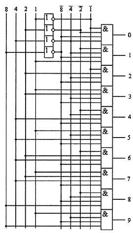 Рис. 2.16. Принципиальная схема дешифратора 4x10