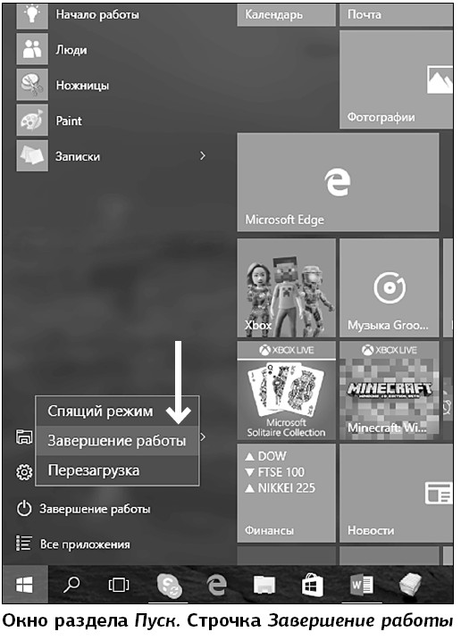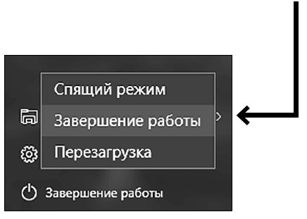 6. Найдите строчку: Завершение работы. Подведите курсор к этой строке, и она выделится серым цветом.