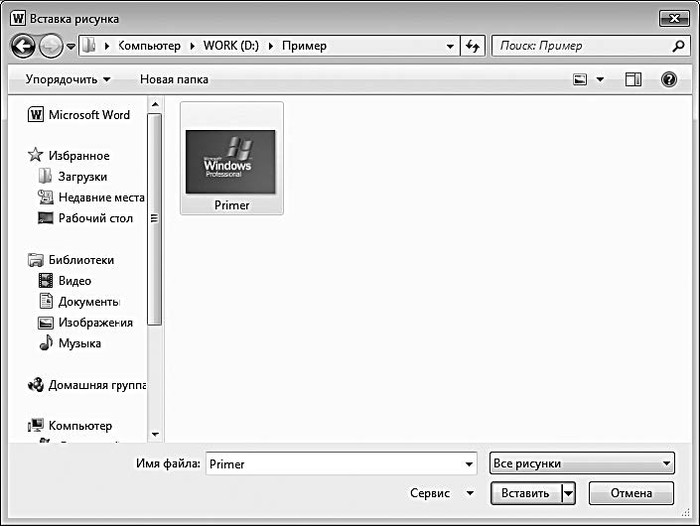 После этого нужно открыть на ленте Word вкладку Вставка и нажать на ней кнопку Рисунок. В результате на экране откроется окно, изображенное на рис. 2.15.
