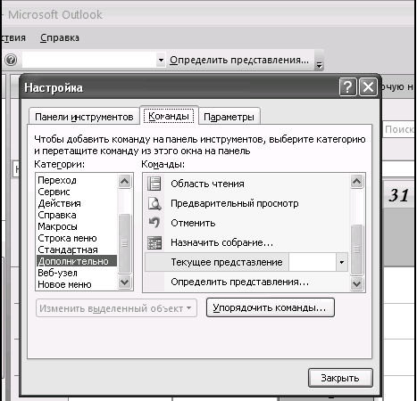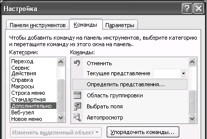 2. В меню Сервис/Настройка на вкладке «Команды» выберите в левой колонке пункт «Дополнительно».
