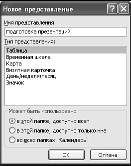 7. Введите название представления – «Подготовка презентаций», тип представления – таблица. Нажмите «ОК».