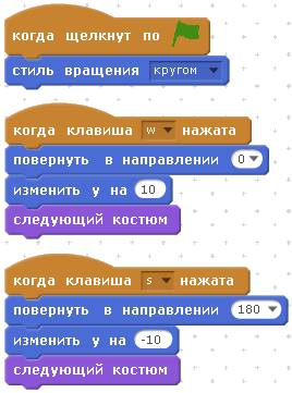 Программу для Гиги сделайте с применением блоков «изменить Y». Гига будет управляться клавишами w и s.