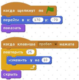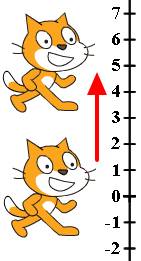 Например, если в начале программы Кот перемещён в точку с координатой Y равной нулю, а затем получил команду «изменить Y на 5», то он переместиться в точку с координатой Y равной пяти, поднимется вверх.