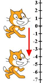 И наоборот, если в начале программы Кот перемещён в точку с координатой Y равной нулю, а затем получил команду «изменить Y на -5», то он переместиться в точку с координатой Y равной минус пяти, опуститься вниз.