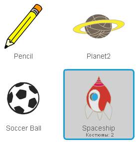 А теперь давайте добавим Ракету, которая будет взлетать при нажатии на пробел. Выберите её из библиотеки.