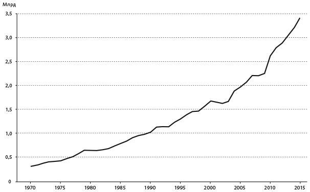КОЛИЧЕСТВО АВИАПАССАЖИРОВ, 1970–2015