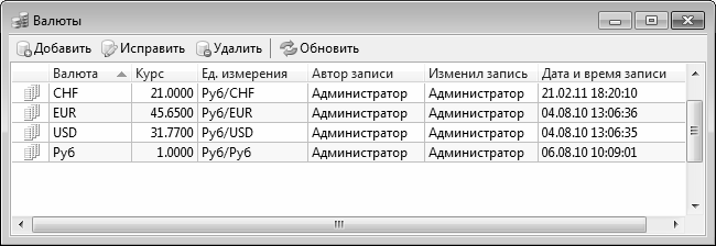 Рис. 1.2. Справочник валют