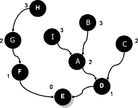Ник догадался, что путь из любого узла графа вдоль этих ниточек к исходной точке будет кратчайшим. Это следует из того, что империя расширялась присоединением ближайших соседей. Действительно, узлы «D» и «F» – ближайшие к исходному узлу «E», ведь они его соседи. Точно так же узел «G» – ближайший к узлу «F», а узел «H» – ближайший к узлу «G». Эти рассуждения справедливы для любых ниточек обратных связей.