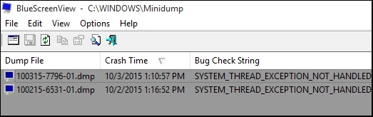 В верхней части окна BlueScreenView вы увидите список случаев возникновения синего экрана: