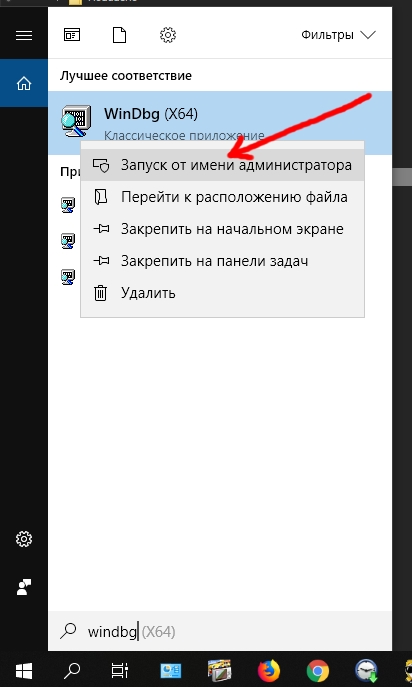 Нажмите «Установить». После завершения установки нажмите клавишу Windows и введите «WinDbg» (без кавычек; в старых версиях Windows вам придется запустить утилиту «Выполнить» [клавиша «Пуск» ? «Программы» ? «Стандартные»] в качестве администратора и ввести «WinDbg»). Нажмите правой кнопкой мыши на WinDbgX64, если у вас 64-разрядная версия Windows (или WinDbgX86 для 32-разрядной версии) и выберите «Запуск от имени администратора»: