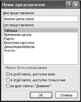 5. Введите название представления: «Анализ дела-«слона». Нажмите «ОК».
