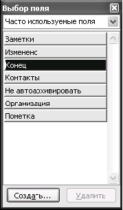 2. В появившемся списке «Выбор поля» выберите «Конец».