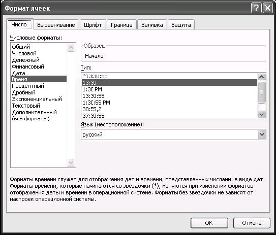 6. В том же окне из списка слева «Имеющиеся столбцы» выберите «Конец» и установите для него тот же формат.