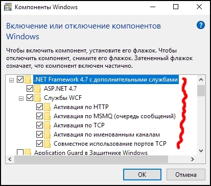 Выберите все компоненты последнего .NET Framework и нажмите «ОК»: