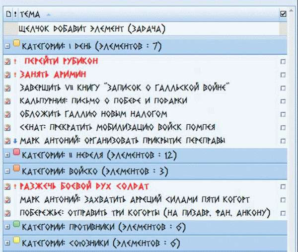 Приоритетные задачи выделены красным и вынесены в начало списка.