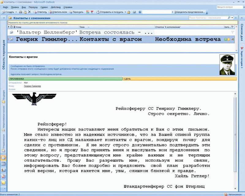 Важное письмо Гиммлеру автоматически выделено красным цветом.