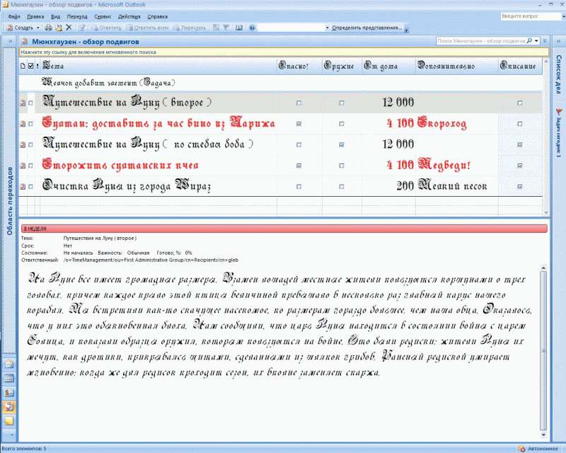 Длительность каждой записи определена Outlook автоматически, с помощью секундомера.