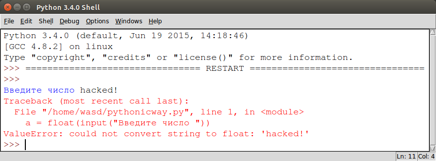 Если пользователь введет информацию, которую мы от него ожидаем, то все сработает как нужно.