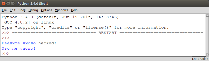 5 | print ("Это не число")