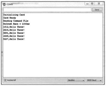 В противном случае сообщаем об ошибке в последовательный порт. Запись строки данных в файл осуществляет функция da taFile.println(); чтобы предотвратить добавление символа новой строки, вызывайте функцию dataFile.print(). Все данные направляются в буфер и записываются в файл только после выполнения команды dataFile.close().