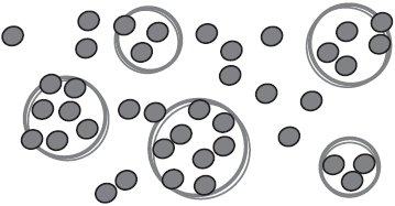Диаграмма сходства позволить расширить ваш взгляд на идеи в целом. Она должна быть похожа на то, что представлено на рис. 6.4. Некоторые идеи близки – такие идеи имеет смысл разместить где-то поблизости друг от друга, чтобы их было легче идентифицировать. Визуальная работа позволяет людям сконцентрироваться на взаимосвязях, а не на том, сколько информации они смогут удержать в собственной голове. Диаграммы сходства обладают также тем преимуществом, что позволяют обсуждать характеристики той или иной идеи. Небольшая группа людей может стоять вместе у стены и комментировать замеченные взаимосвязи, переклеивая листочки с одного места на другое, приходя к новому заключению. Использование в диаграмме сходства клейких листочков обусловлено возможностью их многократного перемещения по стене и простотой получения различных комбинаций.