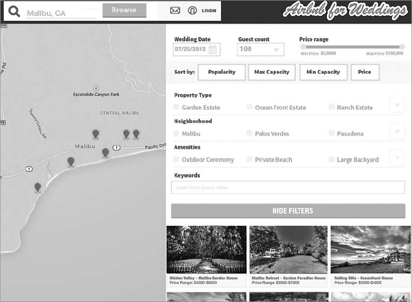 Рис. 7.12. Прототип Airbnb для свадеб, экран 2