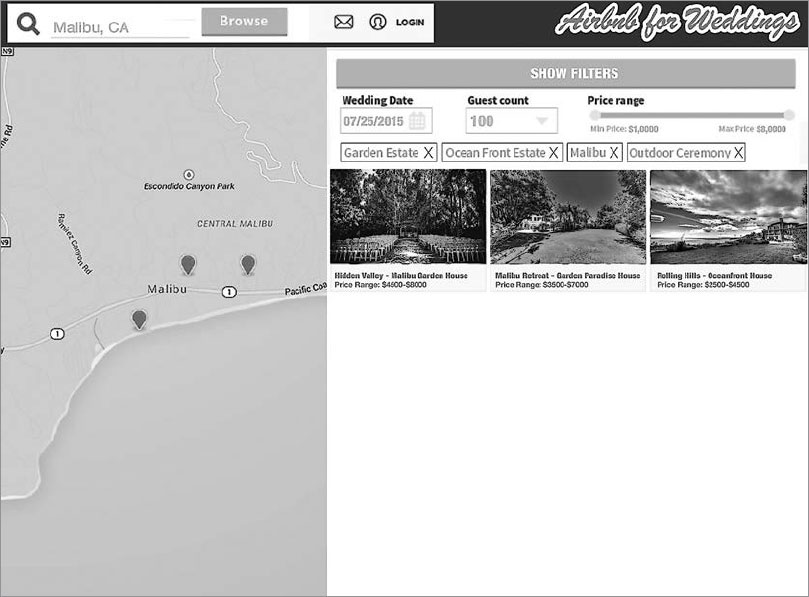 Рис. 7.11. Прототип Airbnb для свадеб, экран 1