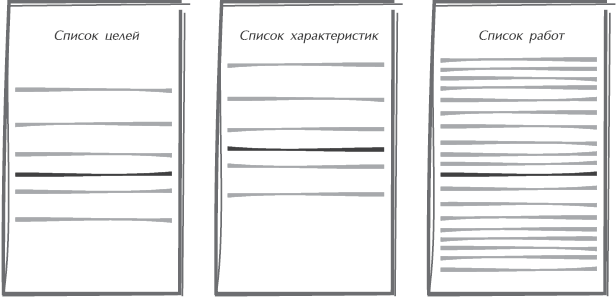 Для большинства проектов используются три наиболее важных типовых списка, содержащих расставленные по приоритетам цели, характеристики и работы (рис. 13.1). Цели проекта обычно являются частью концептуального документа (см. главу 4) или вытекают из него. Списки характеристик и работ появляются в результате проектирования (см. главы 5–7). Поскольку каждый из данных перечней наследует структуру приоритетов своего предшественника, чтобы заново уточнить приоритет каждого уровня и сопоставить уровни, вызывающие сомнения, можно организовывать обсуждения. Хотя не все решается в спорах, они гарантируют, что все принятые решения действительно касаются важных вопросов.