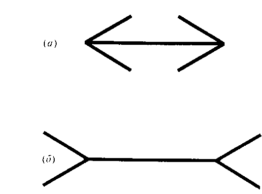 Рис. 2 Оптическая иллюзия, демонстрирующая влияние компактности формы на воспринимаемый размер: горизонтальный отрезок в (б) кажется длиннее, чем в (а), хотя их длина абсолютно одинакова