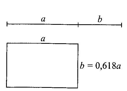 Рис. 6 Золотое сечение (sectio aureu): b так относится к а, как а к сумме а + b (при этом b = 0,618а). С древних времен золотое сечение считается самой совершенной, гармоничной, уравновешенной пропорцией