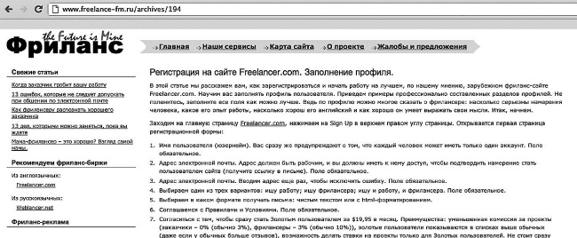 Однажды я увидела это слово в местной газете. Прочитала заметку, которую написала молодая женщина. Она рассказала о том, что есть такая работа в Интернете. Мне стало это интересно. Я зарегистрировалась на сайте фрилансеров и время от времени заглядываю на доску объявлений. Правда, пока не выбрала ничего подходящего для себя. Наверное потому, что занята более интересными, на мой взгляд, в сегодняшний момент делами. Но все время держу этот вариант «про запас» и сейчас своими словами попытаюсь пересказать эту статью, так как подлинник у меня не сохранился.