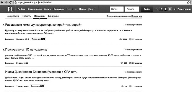 Раз вы читаете эту книгу, то, как и я, вряд ли знакомы с ИТ-профессиями. Ничего страшного. На фрилансе востребованы десятки профессий, некоторые из них требуют минимальной подготовки (например, рерайтер). Я, например, несколько лет назад выполнила два заказа. Больших денег, правда, не было. Я писала, как начинающая по минимальной цене, но навык получила. Говорят, что освоить несложные специальности можно за пару недель – месяц, изучая профессиональные форумы, читая статьи. У меня на это ушло полгода из-за плохой технической подготовки.