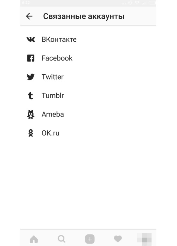 На картинке видно какие соцсети можно связать с инстаграмом. Найти это меню можно в настройках (параметрах), это такие вертикальные три точки, которые находятся в правом верхнем углу. После того как вы привяжете нужные аккаунты, вы автоматически сможете публиковать один и тот же пост во всех соцсетях. Это особенно хорошо, когда там (например, ВКонтакте) у вас уже есть много друзей и подписчиков.