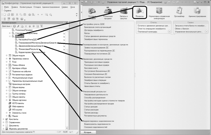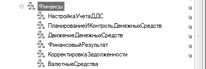 Далее мы на примере подсистемы «Финансы» рассмотрим, каким образом в Конфигураторе можно самостоятельно создавать и редактировать подсистемы.