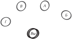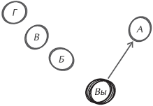 Непосредственный запрос – это самое простое из всех возможных действий: вы обращаетесь к обладателю необходимых вам властных полномочий и высказываете ему свою просьбу. В зависимости от избранного вами подхода и приема общения (вернитесь к предыдущему перечню) вы можете обставить все в форме простого разговора, послать запрос по электронной почте или высказать все на совещании, собранном по этому поводу. Чем формальнее вы подойдете к запросу, тем больше шансов на то, что в его обсуждении будут участвовать другие. Чем меньше будет формализма, тем прямее может быть как разговор, так и сам запрос. На рис. 16.5 буквой А обозначен человек, обладающий необходимой вам властью, а буквами Б, В и Г – другие люди из вашей команды.