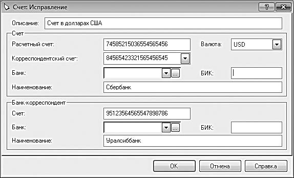 Рис. 6.8. Ввод и редактирование банковских реквизитов