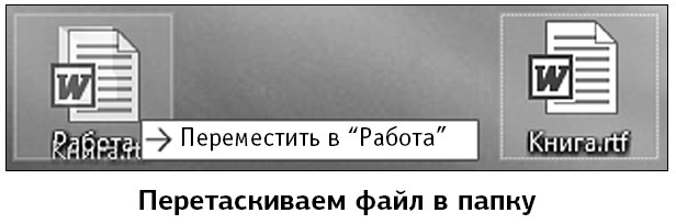 Этот способ можно использовать в том случае, если файл и папка находятся рядом, например оба лежат на Рабочем столе. Тогда можно просто перетащить файл в папку.