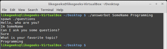 Как видите, всё работает так, как ожидалось. Теперь expect-скрипт отвечает на вопросы bash-скрипта, пользуясь переданными ему параметрами командной строки.