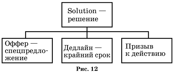 Однако вам необходимо знать, что «Решение» должно представлять собой симбиоз оффера, дедлайна и призыва к действию (рис. 12).