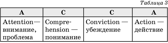 ACCA – третья схема продаж, ее можно расшифровать следующим образом (см. табл.3).