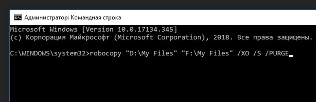 robocopy «D: My Files» «F: My Files» /XO /S /PURGE
