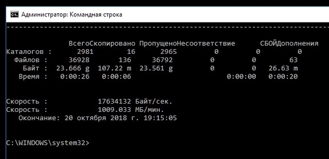 Нажмите клавишу Enter для выполнения данного скрипта. Если у вас много файлов, Robocopy будет занята в течение нескольких минут, осуществляя вывод большого объема текста. При завершении вы увидите что-то похожее на следующий отчет: