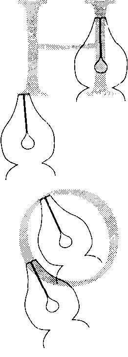 Рис. 30 Форма засечек (а, гарнитура Лизурского) и смещение наплывов на округлых частях букв (б, шрифт Adobe Jenson) в шрифтах, гуманистической антиквы объясняются подражанием рукописному почерку наклонным пером с плоским концом