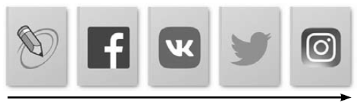 Вот почему мы последовательно наблюдали эволюцию социальных сетей от текстовых к визуальным (см. рис. № 15). Следующей в списке будет социальная сеть с виртуальной реальностью, поскольку ощущение физического присутствия — это пока единственное, чего недостаёт современным социальным сетям, чтобы полностью поглотить человека.