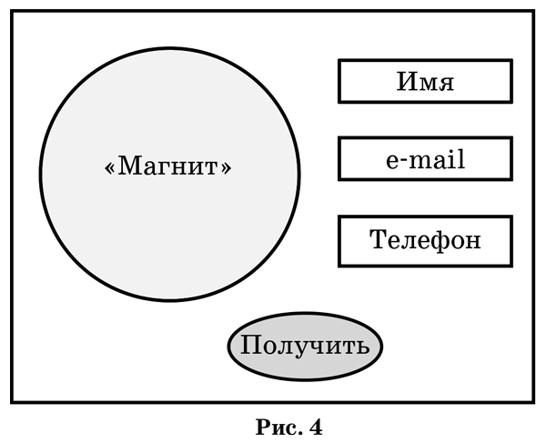 Несмотря на угрожающее название, такая страница представляет собой вполне безобидную landing page, на которой вам необходимо расположить следующие вещи: «магнит», простую форму подписки и, собственно, кнопку «Получить» (рис. 4).