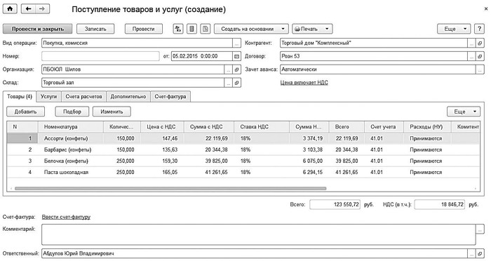 Рис. 5.25. Оформление приходной накладной