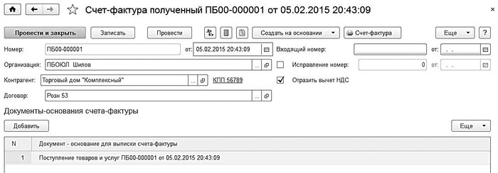 Рис. 5.27. Формирование счетафактуры