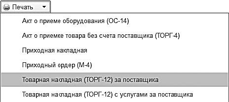 Рис. 5.24. Документы на поступление ТМЦ и получение работ (услуг)